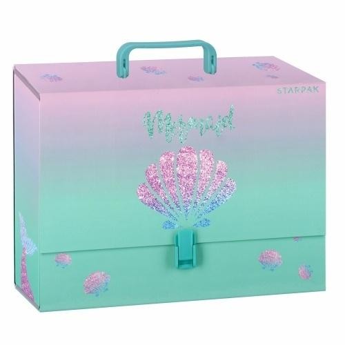 Teczka z rączką z kolekcji STARPAK z serii Shell. Sztywna teczka wykonana z grubego, lakierowanego kartonu. Zamykana na plastikowy klips. Teczkę wyposażono w solidną rączkę. Teczka o szerokości grzbietu 9,5 cm. Idealnie sprawdzi się na zajęciach pozaszkolnych czy do przechowywania prac dziecka. Zapoznaj się również z innymi produktami z tej serii! Wymiary/waga: wymiary produktu (szer. x wys. x gł.)[cm]: 33x25x10, waga produktu [kg]: 0,50 kg. Produkt przeznaczony dla dzieci w wieku: 3+