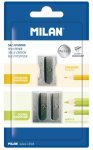 2 temperówki aluminowe bez pojemnika. Jedna pojedyncza na cienką kredkę i ołówek a druga podwójna na cienką i grubą. Posiadają ostre i wytrzymałe ostrza ze stali węglowej dzięki czemu idealnie nadają się do wszystkich rodzajów ołówków.