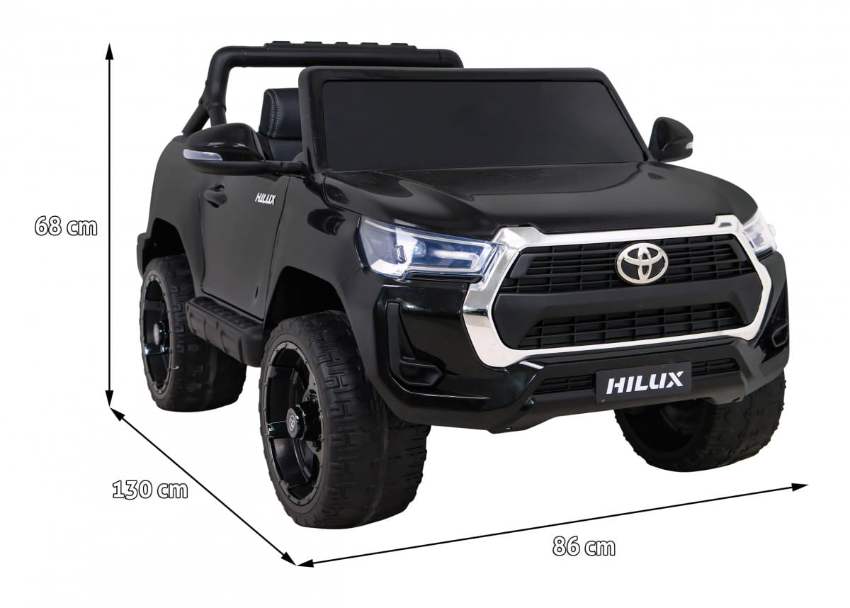 Toyota Hilux na akumulator dla dzieci Czarny + Napęd 4x4 + Pilot + 2 bagażniki + Radio MP3 + LED