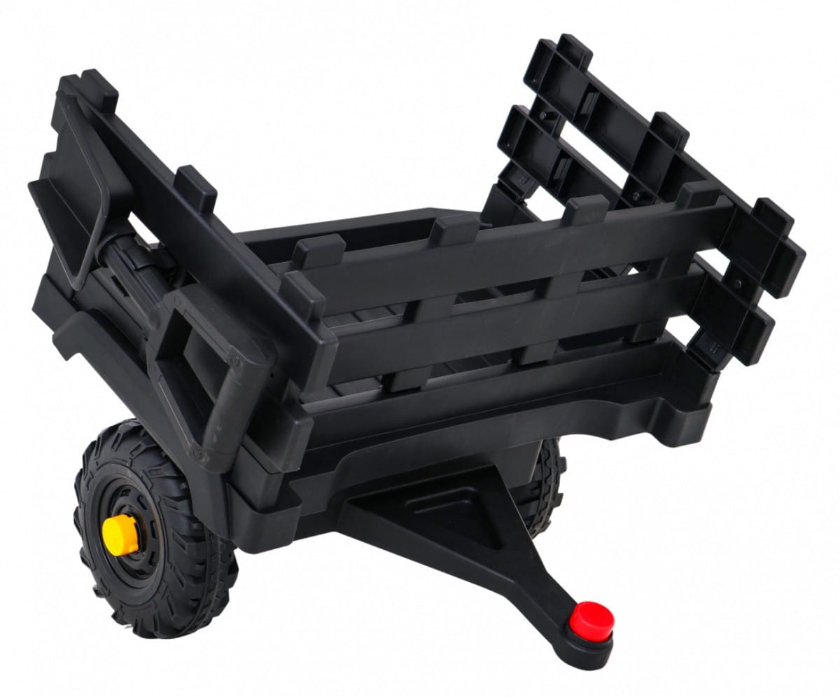 SpecyfikacjaTraktor Titanium Z Przyczepą Silnik2 x 45W,Akumulator12V/7Ah,Pilot2.4G,Przycisk awaryjnego zatrzymania Stop,3 Szybkości,KołaEVA:- przód: 27 x 12 cm,- tył: 32 x 14 cm,BiegiWolny Start,Przód/Tył,2 szybkościWyposażeniePanel AudioMP3,USB,AUXDźwięki w kierownicy,StartWłącznik z Odgłosami SilnikaPrzyczepawymiary : 29 x 25 x 55 cmkoła : 19 x 6 cmSiedzenie33 x 18 x 26 cm EkoskóraWymiary Rozmiary Pojazdu z Przyczepą153 cm x 67 cm x 62 cm,Waga Pojazdu18 KgRozmiar Kartonu108 cm x 61 cm x 44 cm,Waga Kartonu22,9Kg,Maksymalne Obciążenie28 Kg,Prześwit12 cm,Wyposażenie DodatkoweInstrukcja + Zestaw Montażowy,Ładowarka,ŁopatkaEAN: 5903864913262.