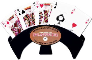 Trzymacz mieści 25 kart. Dobrze leży w dłoni, można również postawić go na stole.