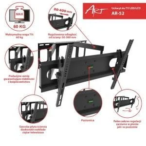 Uchwyt ścienny do telewizora ART AR-52 (ścienne; 30" - 70"; max. 60kg)