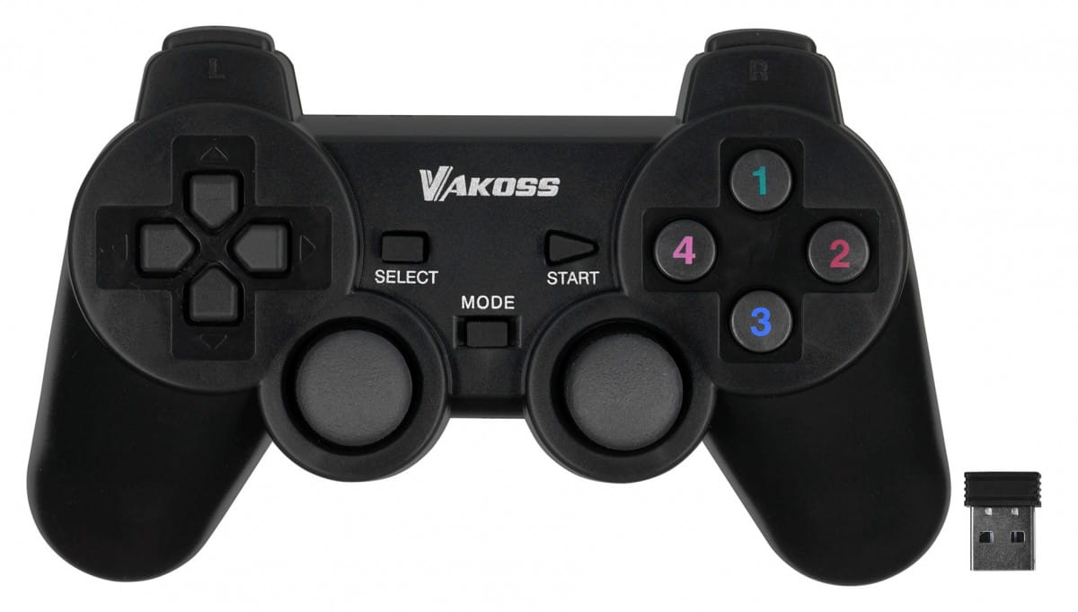 VAKOSS GAMEPAD BEZPRZEWODOWY USB Z FUNKCJĄ DUAL SHOCK, PC/PS3, TRYB CYFROWY I ANALOGOWY, GP-4705BK CZARNY