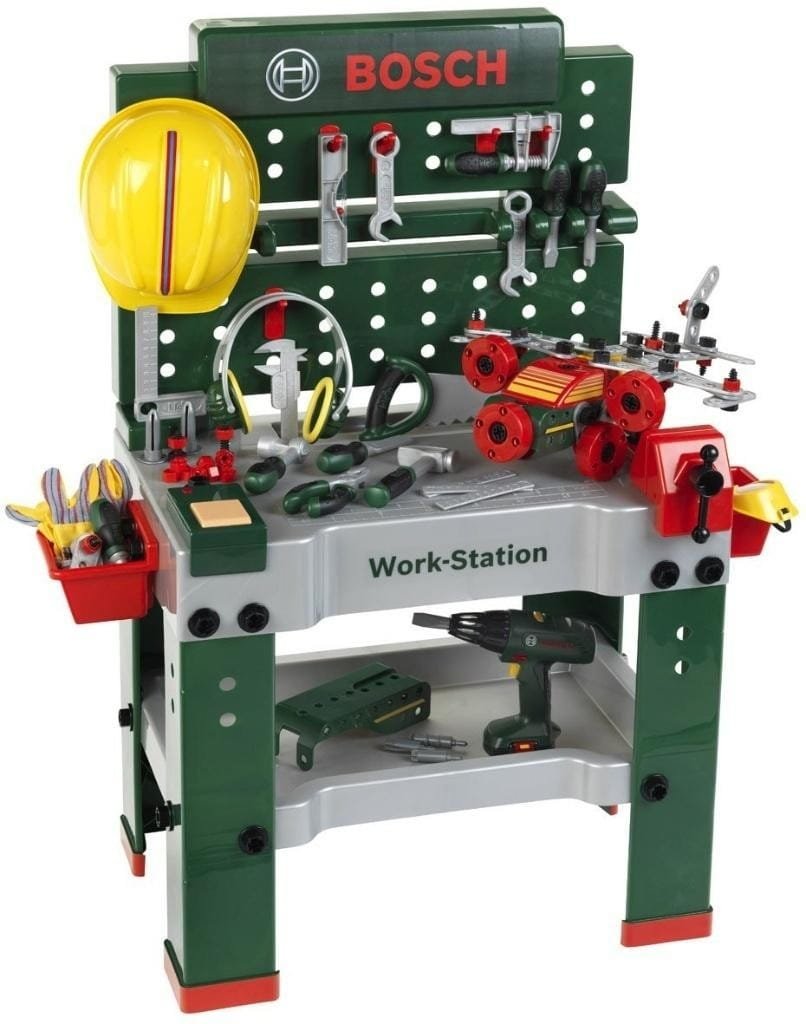 KL 8485 Warsztat Bosch no.1 150 elementówNajwiększy warsztat marki Klein pochodzi z serii zabawek Bosch mini powstałej na licencji firmy Bosch, dlatego też narzędzia i akcesoria wchodzące w jego skład są wiernymi kopiami faktycznie istniejących.