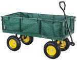 Dzięki temu wózkowi ogrodnictwo będzie działać tak samo mało, jak podróż, która wymaga dużo miejsca i obciążenia. Ponieważ duży wagon ma obszerną przestrzeń ładunkową ze składanymi ścianami zewnętrznymi, stalową ramę z powłoką ochronną i 12-calowe gumowe opony. Ten wytrzymały wózek transportowy zabierze Cię na wzgórza i doliny przy wietrze i pogodzie!