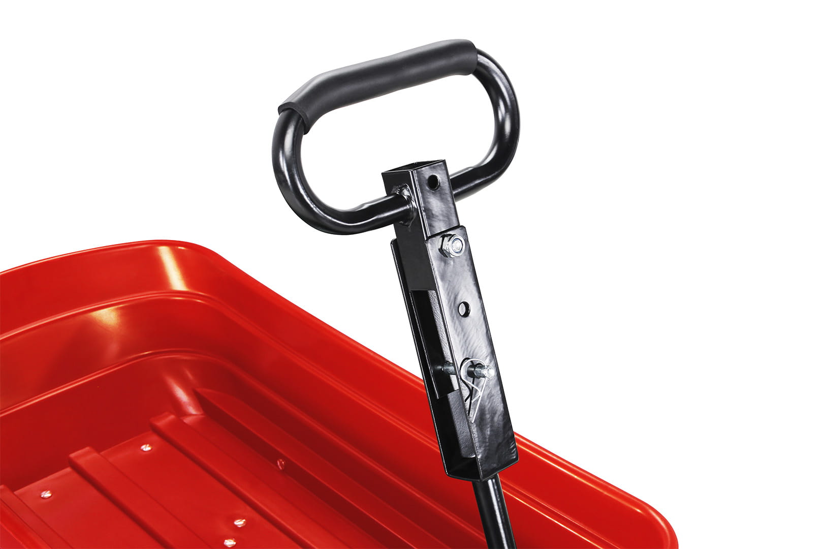 Ten wózek gwarantuje maksymalną elastyczność! Ponieważ wyściełany hak można w razie potrzeby zdemontować lub przekształcić w hak holowniczy, dzięki czemu zawsze możesz sam zdecydować, jaki rodzaj transportu preferujesz!