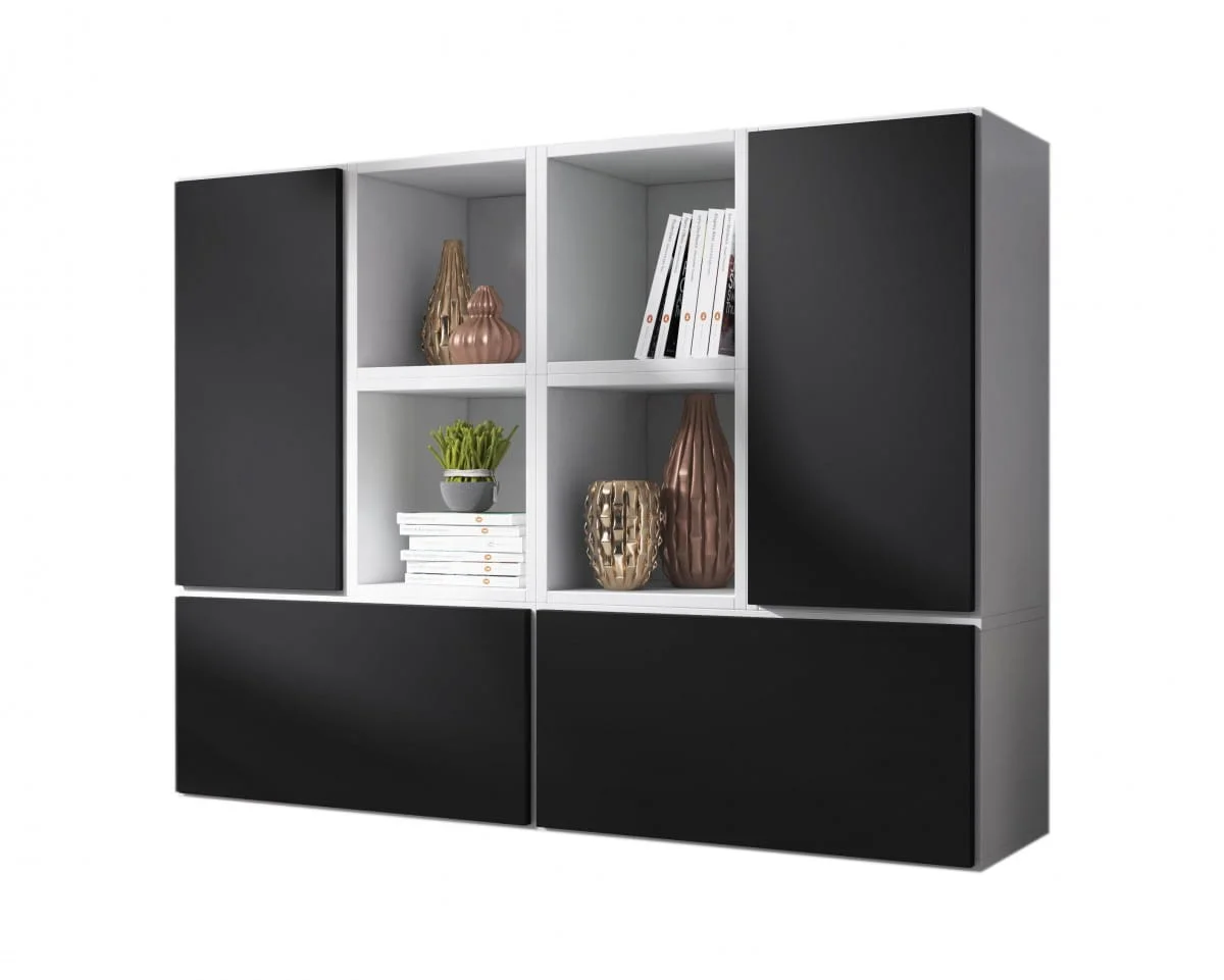 Dodatkowe informacje: Zdjęcia przedstawiają przykładową aranżację zestawu., Szafka stojąca lub podwieszana, Istnieje możliwość dokupienia oświetlenia szafkowego LED., Zdjęcia wnętrza szafki przedstawiają wersję kolorystyczną antracyt/dąb wotan i są jedynie poglądowe., Płyta wiórowa laminowana wyróżnia się odpornością na naprężenia mechaniczne i ekstremalne temperatury, Szafka RO-3: 37,5/75/39 cm: jedna klapa otwierana do dołu lub do boku (lewo/prawo), możliwość powieszenia/postawienia szafki w poziomie lub w pionie, jedna przestrzeń w środku - brak półki wewnątrz, Meble do samodzielnego montażu, Akcesoria tzw. ślizgacze w zestawie, Bezuchwytowe fronty, Szafka RO-6: 37,5/37,5/39 cm, jedna przestrzeń - brak półki, Podane wymiary całkowite zestawu, Jeśli front ma się otwierać ku górze, należy we własnym zakresie zakupić podnośniki gazowe (2 sztuki do jednej prostokątnej szafki)
