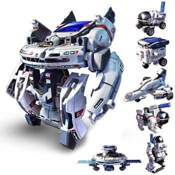 Opis Solarna flota kosmiczna 6w1 (2117) Solarne pojazdy – zestaw 6 w 1 - to edukacyjna zabawka do samodzielnego składania, zasilana światłem słonecznym.Do skonstruowania zestawu nie potrzebujesz żadnego kleju czy narzędzi.