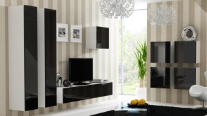 Dodatkowe informacje: Szafka RTV VIGO: 30/180/40, dwie klapy otwierane do dołu, front w wysokim połysku, wewnątrz dwie komory, szafka podwieszana., Witryna VIGO kwadrat: 50/50//30, front w wysokim połysku otwierany do boku, wewnątrz jedna półka zwykła., Całkowity wymiar meblościanki VIGO 24: 260/40/180 + komoda (4 szt. witryna kwadrat), Istnieje możliwość dokupienia oświetlenia szafkowego LED., Witryna VIGO '180' pełna: 180/40/30, wewnątrz cztery półki zwykłe., Zdjęcia przedstawiają przykładową aranżację zestawu., Podany wymiar całkowity zestawu nie uwzględnia widocznych na zdjęciach przerw między bryłami. Zalecana odległość min. 10 cm.