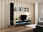 Dodatkowe informacje: Bezuchwytowe fronty, Opcjonalne oświetlenie LED półek (za dopłatą), Istnieje możliwość dokupienia oświetlenia szafkowego LED., Witryna VIGO '180' pełna: 180/40/30, wewnątrz cztery półki zwykłe., Meble do samodzielnego montażu, Szafka RTV VIGO NEW '180': 30/180/40, front otwarty (bez szyby) w wysokim połysku, jeden front stały (wysokość 7 cm), dwa fronty otwierane do góry (wysokość 14 cm), wewnątrz dwie komory, szafka RTV po, Podany wymiar całkowity zestawu nie uwzględnia widocznych na zdjęciach przerw między bryłami. Zalecana odległość min. 10 cm., Dostępne kolory podświetlenia: biały zimny, czerwony, niebieski, zielony