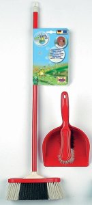 Zestaw do sprzątania klasyczny autorskiej marki Klein - Pure Fresh składa się z miotły na długim kiju, zmiotki i szufelki. Miotła ma 61,5 cm wysokości i 18 cm szerokości. Czarno-białe włosie miotły i zmiotki jest na tyle gęste i trwałe, że spokojnie nadaje się do robienia prawdziwych porządków. Zarówno miotła jak i zmiotka przydaje się świetnie do sprzątania drobnych klocków, czy niewielkich domowych porządków w dziecięcym pokoju. Od prawdziwych akcesoriów odróżnia je tylko wielkość dostosowana dla dzieci. Bawiąc się w sprzątanie domu, dzieci zapoznają się z dorosłymi zadaniami, ćwiczą motorykę i rozwijają swoją wyobraźnię.