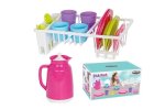 Zestaw naczyń z suszarką. W zestawie: suszarka do naczyń, 2 duże talerze, 2 małe talerzyki, 2 miseczki, dzbanek, 2 kubki, 2 szklanki, 2 zestawy sztućców, wymiary suszarki: 29 x 18 x 9 cm.
