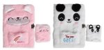 Zestaw pluszowych notesów A5 (z kłódką) i A7 kotki / pandy