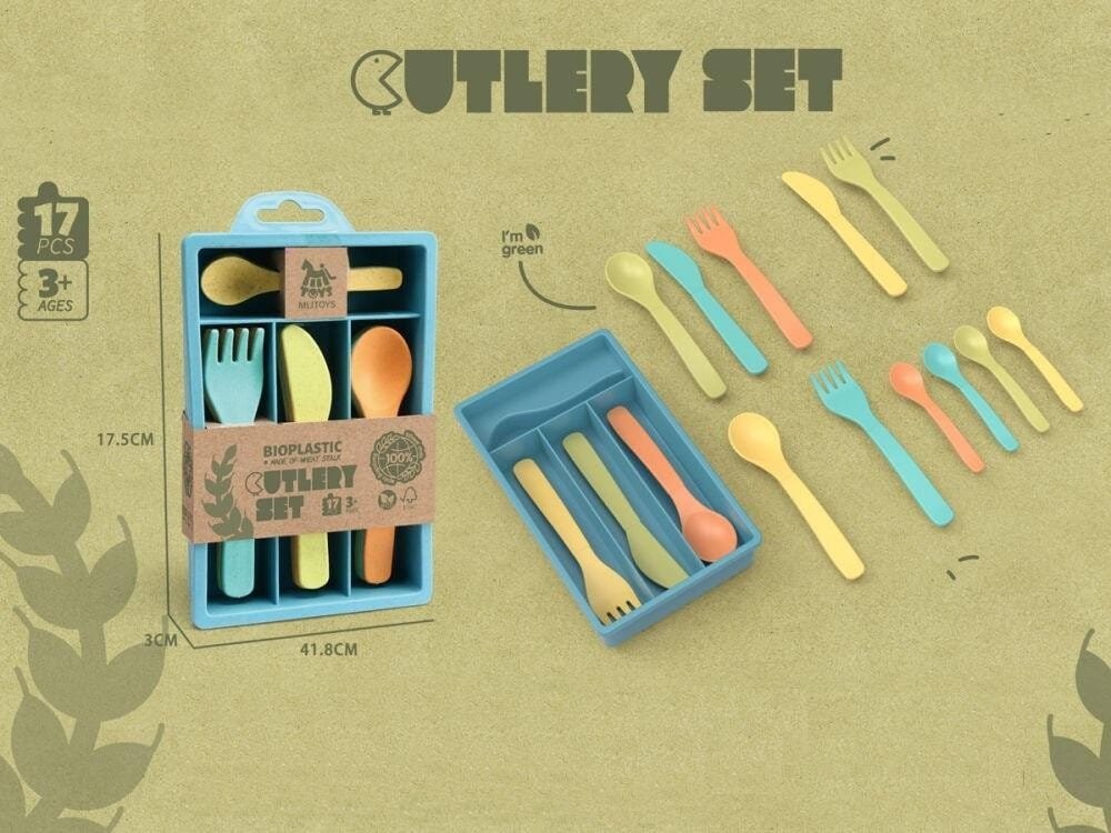 Zestaw sztućców z bioplastiku w pudełku 17elEAN: 6927193506086Grupa wiekowa: 3+Opakowanie: pudełkoProducent: IcomWymiary: 175x118 mm.