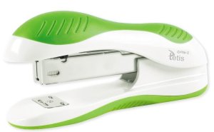 Zszywacz w obudowie z tworzywa sztucznego, części mechaniczne metalowe. Zszywanie otwarte/zamknięte.